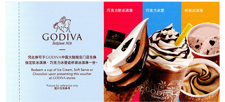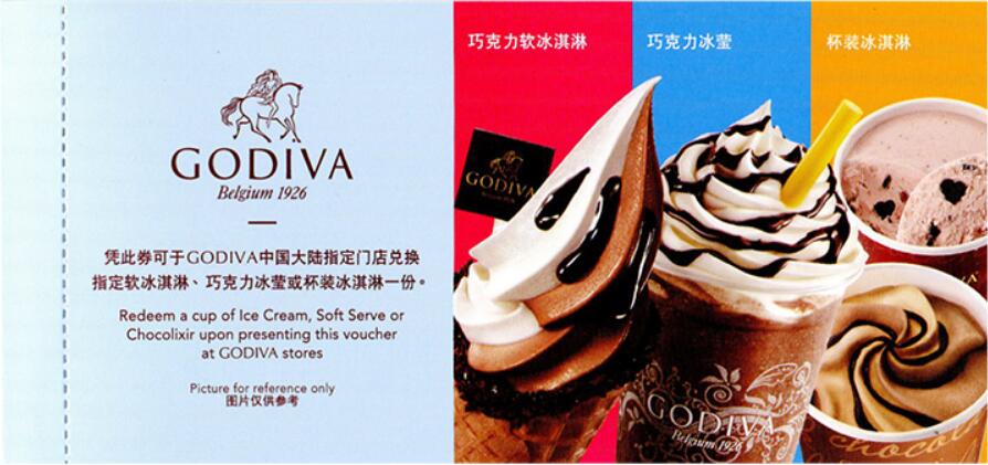 GODIVA歌帝梵50面值6张套组冰淇淋兑换券优惠券现金券全国通用