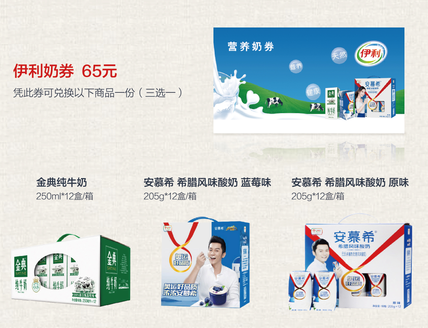 伊利牛奶券员工工会福利券138型(6选1)