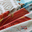 产品介绍:百合、茶花、木槿花,争相绽放,花型饱满富有层次感,流露出优雅精致的生活风尚。活性印染工艺,环保健康;斜纹面料手感厚实,耐磨耐用。